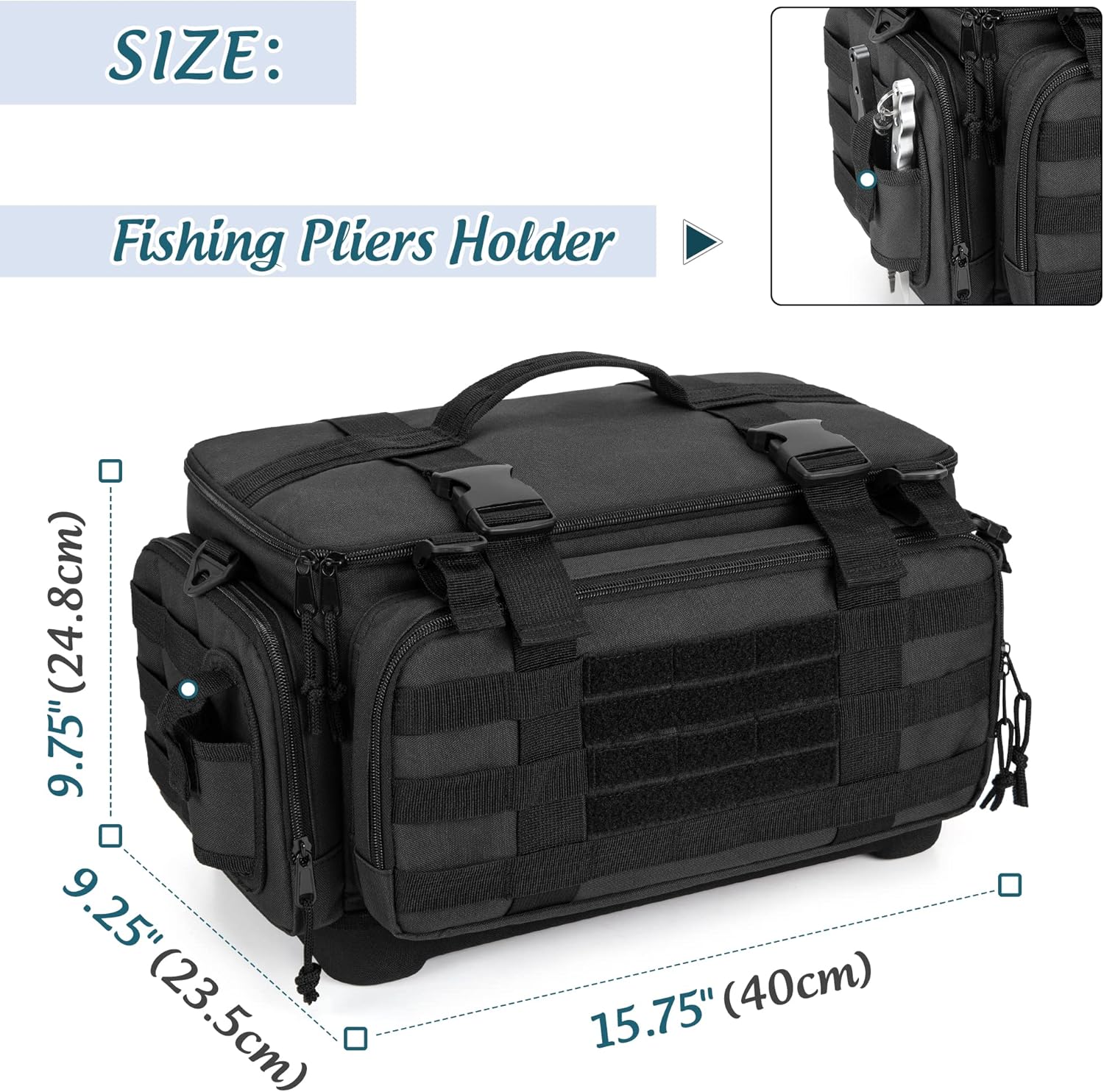 DSLEAF Waterproof Tackle Box Bag with Rod Holder, Soft Fishing Tackle Storage Bag with Non-Slip Base for Saltwater or Freshwater Fishing (Patent Design), Only Bag